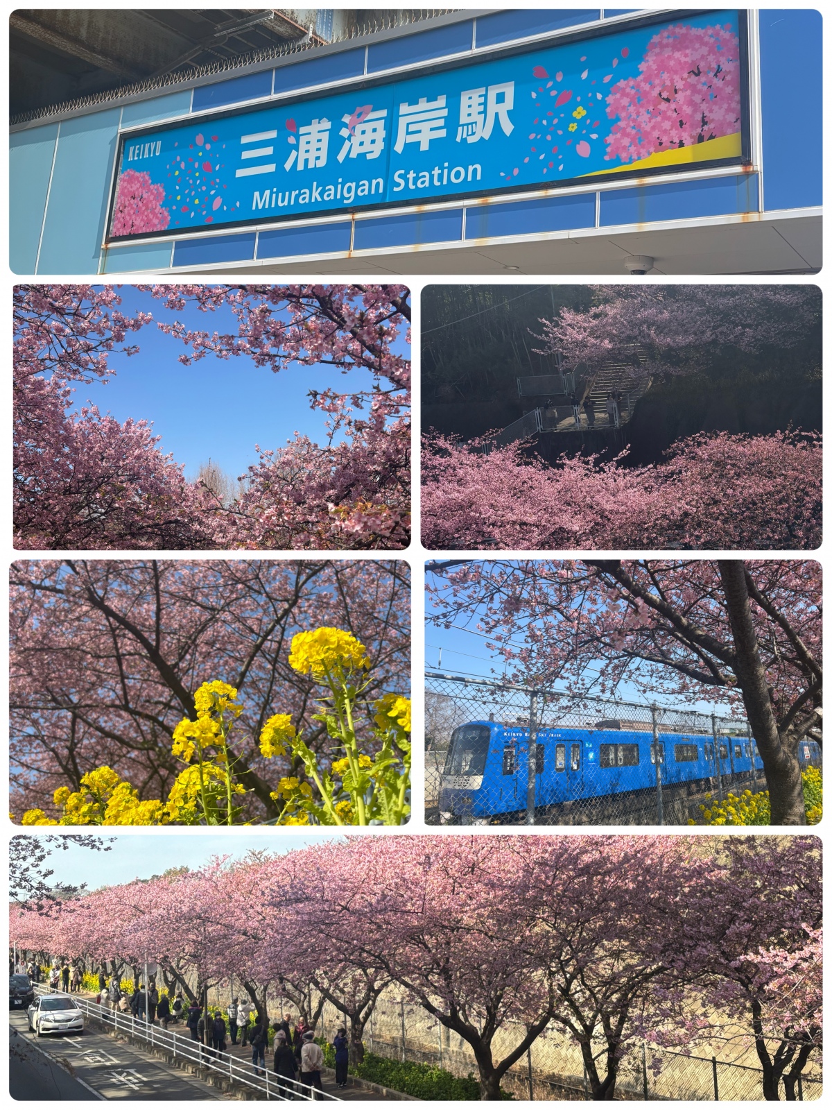 三浦海岸桜まつり🌸 へ⋯行って来た〜 🚃𓈒𓂂𓏸三浦海岸駅に10時ちょい前に着いたんだけど...既に人。人。人ーーー!!!だった。ゲッ!(꒪ꇴ꒪もう1時間早くても良かったかもし。🤔桜🌸も見頃で...葉桜になっている木もあったYo。